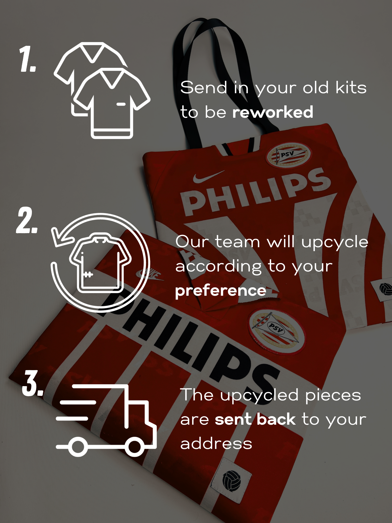 - Let us do the magic! Each piece will be upcycled by hand. Please leave any key design notes in the parcel or at checkout (eg., exclude betting sponsors).