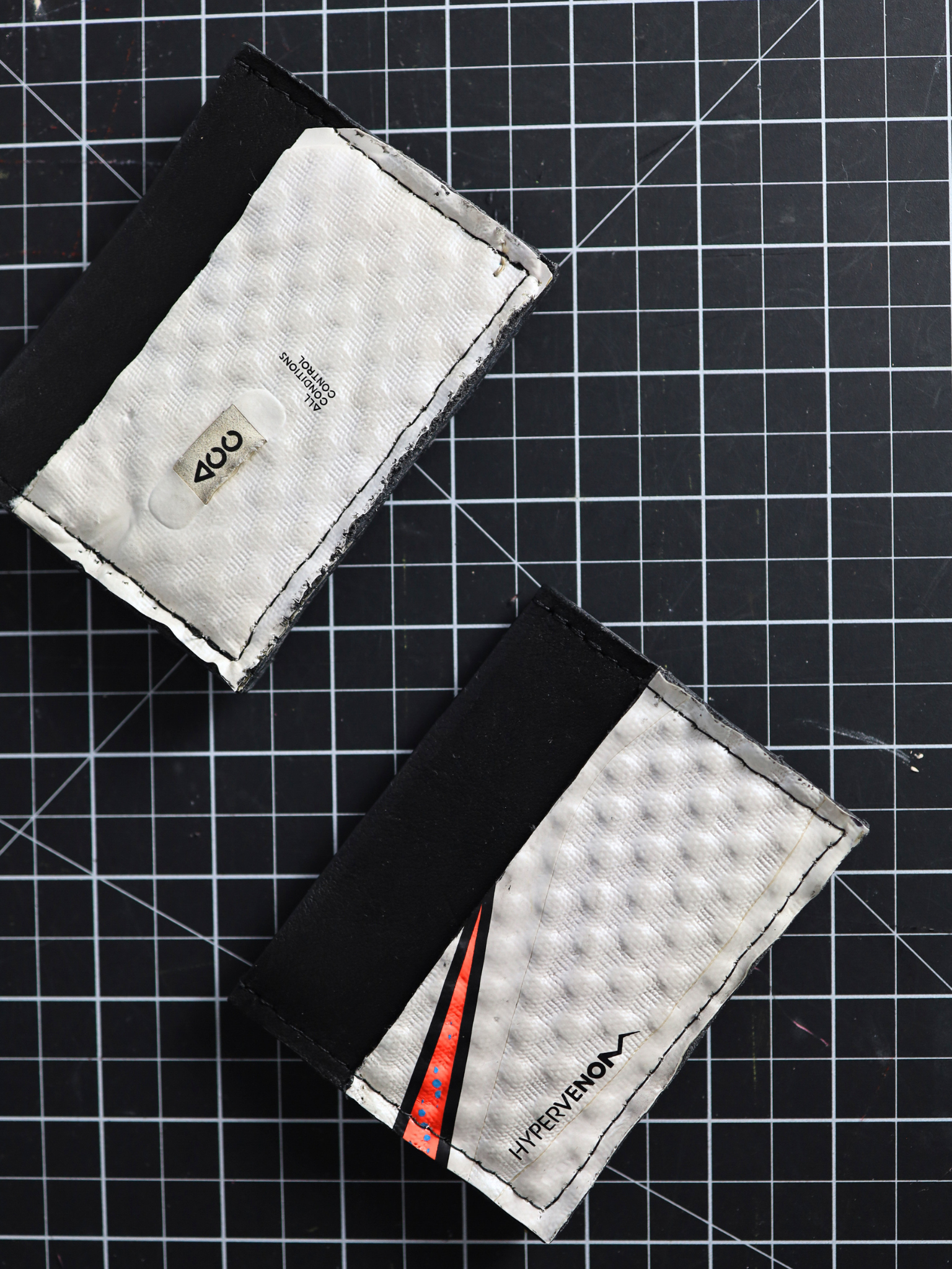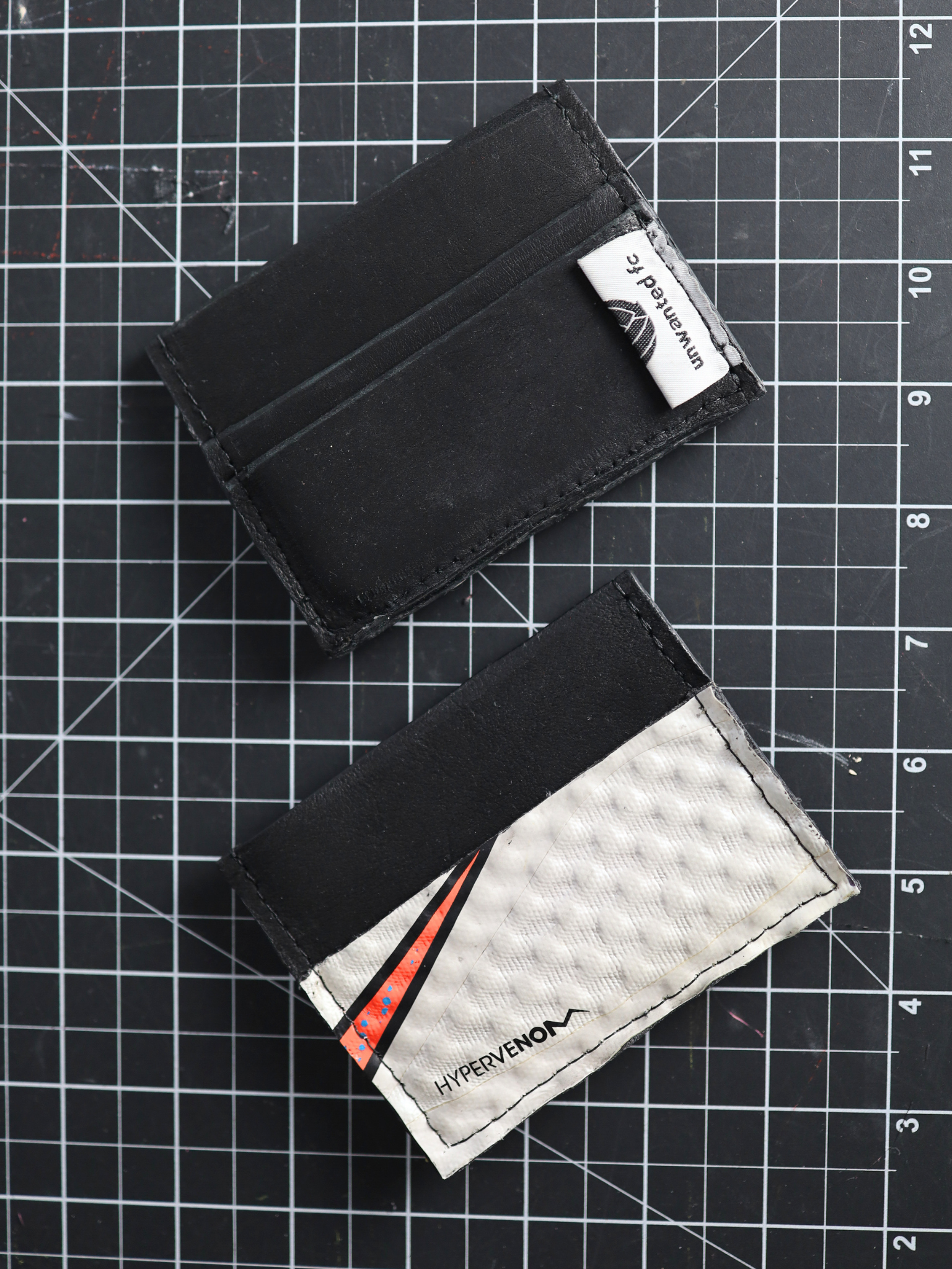 We've upcycled an assortment of old football boots - from sample displays, to some damaged pairs. This card wallet features 3 pockets, storing up to 6 cards safe and securely.