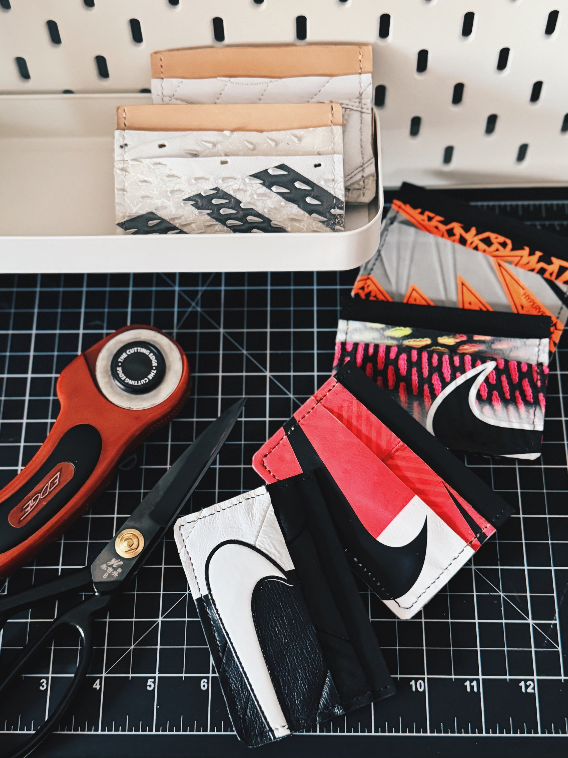 Together with the talented Tuesday Pickup, we've upcycled an assortment of sample & one-off display boots donated by a retailer. Part 1 see's us assemble card wallets, suited for everyday use.