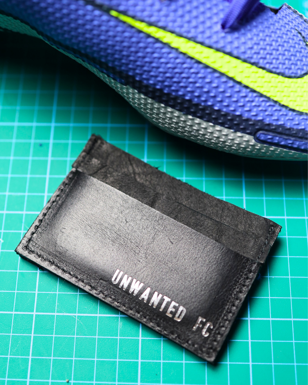 We've upcycled an assortment of old football boots - from sample displays, to some damaged pairs. This card wallet features 4 pockets, storing up to 6-8 cards safe and securely.